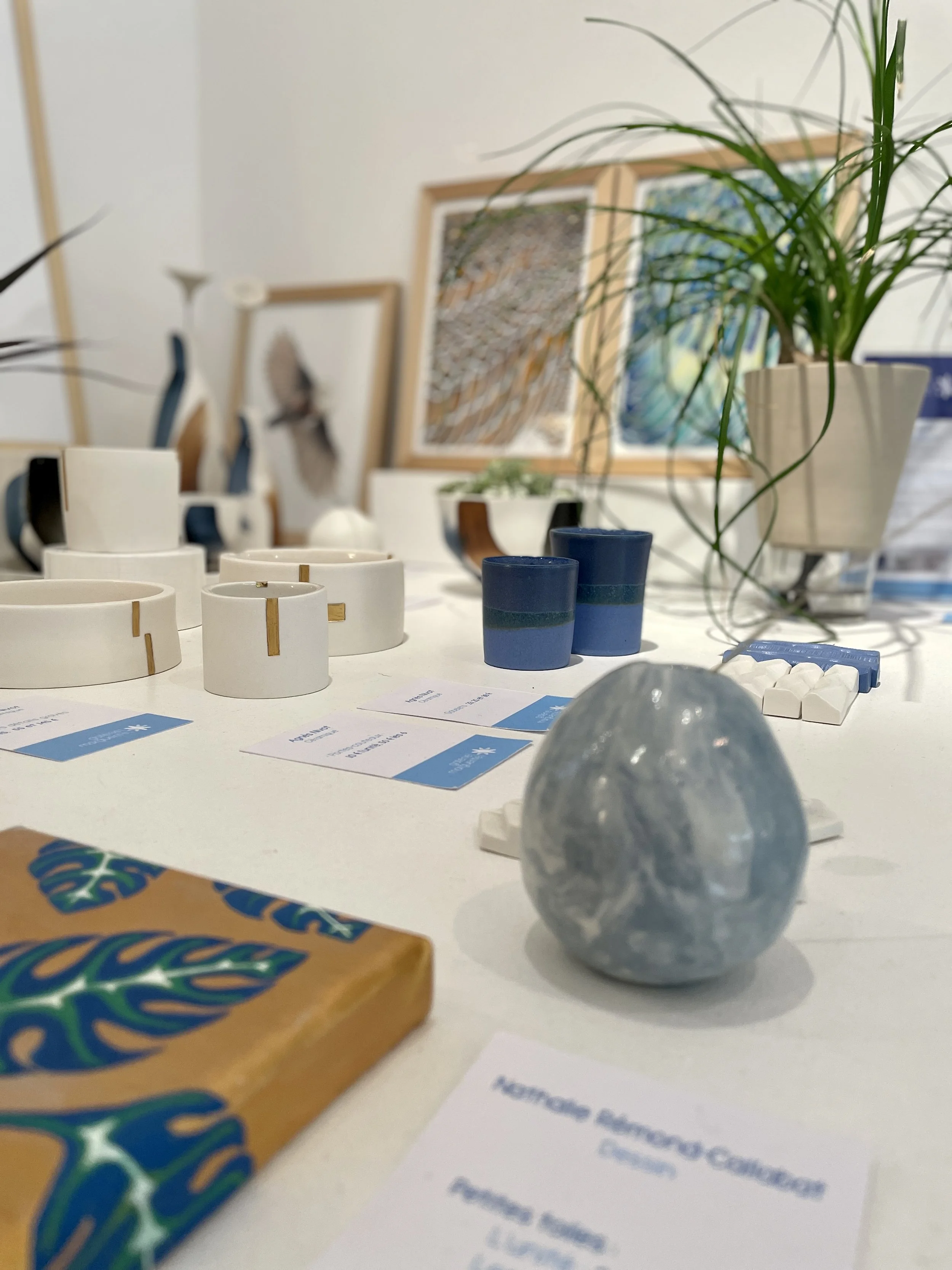 C’est un lieu d’exposition et de vente consacré aux métiers d’art. La galerie présente une sélection de pièces d’une vingtaine d’artistes et artisans d’art. Différentes disciplines sont représentées : céramique, gravure, peinture, sérigraphie, travail du papier, du cuir, du métal, du verre… En termes de prix, l’essentiel des objets proposés se situe entre 20 et 150€, avec quelques pièces d’exception qui peuvent aller au-delà.